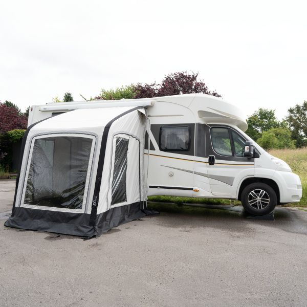 Napihljiv predšotor Vega je idealen za tiste, ki veliko potujete in pogosto menjate lokacije, saj se ga hitro postavi in pospravi. Na voljo sta dve globini, 220 cm ali 250 cm, ki zagotavljata prostoren notranji prostor, z zračnimi cevmi, katere omogočajo, da stojite pokonci in optimalno izkoristite prostor. Velika panoramska okna ustvarjajo občutek prostornosti, vključen mrežasti element pa zagotavlja prijetno notranjo klimo, zaščito pred insekti in senco v vročih dneh. Model je dodatno pripravljen na priklop sončnega nadstreška Canopy Shady Pro.