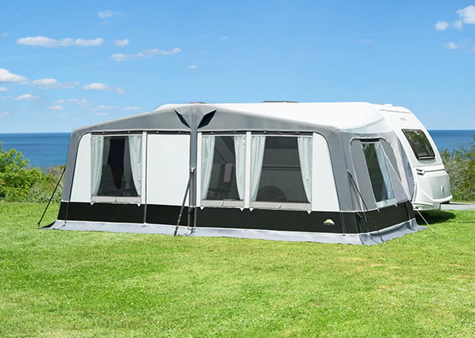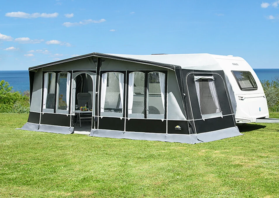 Prinz je kakovosten in vsestranski predšotor, zasnovan za udobno kampiranje v vseh sezonah. Na voljo sta dve različici globine: 240 cm za kompaktno udobje ali 300 cm za še več prostora. Streha, sprednja in stranske stene so izdelane iz trpežnega poliestrskega materiala, obojestransko plastificiranega, odpornega na vremenske vplive in enostavnega za čiščenje, okenske folije pa absorbirajo približno 90 % UV-žarkov.